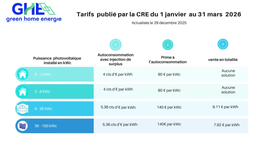 Tarifs officiels de rachat et d’autoconsommation photovoltaïque